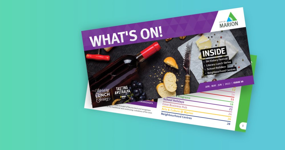 Find out about the latest in adult programs, author events, kids' holiday workshops, business seminars, History Festival, neighbourhood centre programs and much, much more throughout the months of April, May and June, 2022! Drop in to any branch of the Marion Libraries or Neighbourhood Centres and grab the latest What's On! booklet to see everything on offer or read it online below.