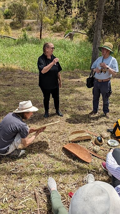Image: Quahli Newchurch, a proud Kaurna, Narungga, and Kokatha woman, brought pieces of art and tools made by her family to the Kaurna Walk & Talk Tour along Lower Field River this month (photograph by Deb Morriss).