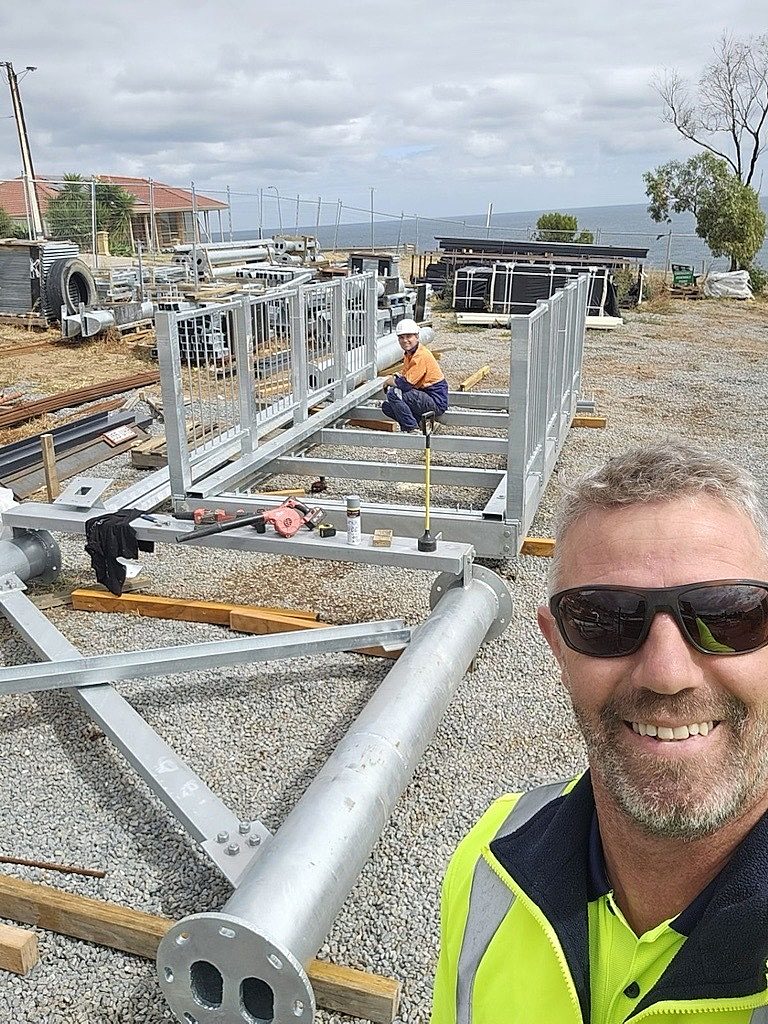 Steelworks for sections of the bridge have been taking place all week at the Fryer Street Reserve construction compound. The first sections (bridge portals and platform landings) have been transported and installed at Grey Gully in the past few days.