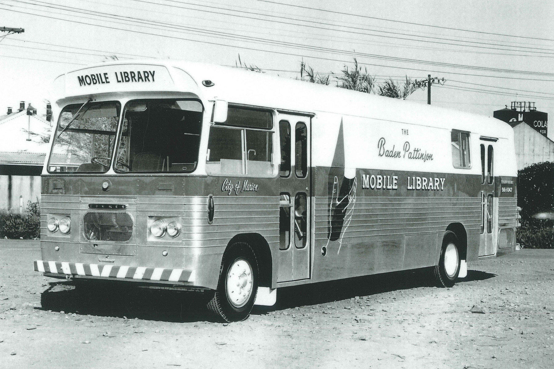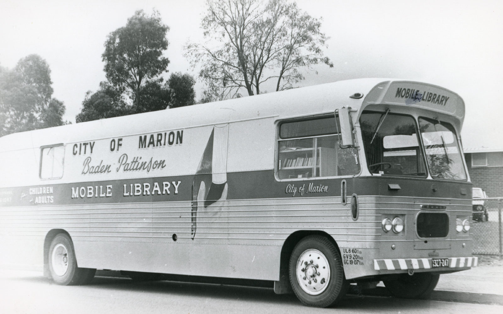 On the 2nd of November 1963 the first mobile library in the state was commissioned. The Sir Baden Pattinson Mobile Library was the brain child of Jim Crawford, a member of the Libraries Board, who arranged for the Commercial Motor Vehicle Foundation to fit out a 34-foot long bus and donate it to the City of Marion.