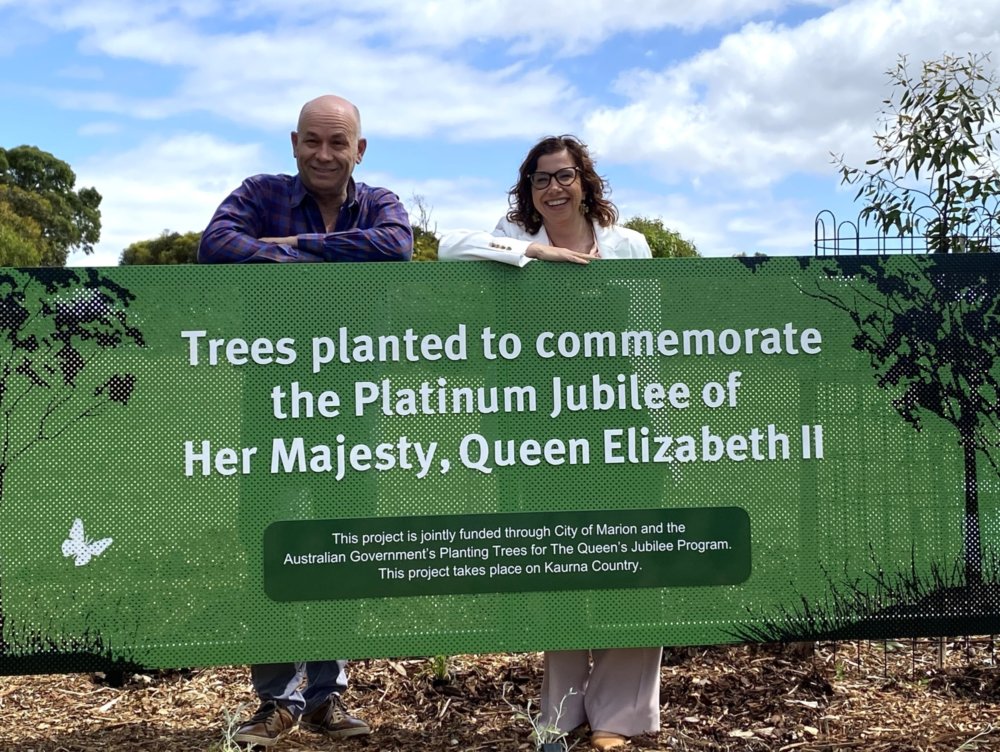 Federal Member for Kingston and Minister for Social Services, Amanda Rishworth, and Mayor of Marion Kris Hanna unveiled a special sign in Nari Reserve today (Wednesday, December 7) to commemorate the Platinum Jubilee of Her Late Majesty, Queen Elizabeth II.