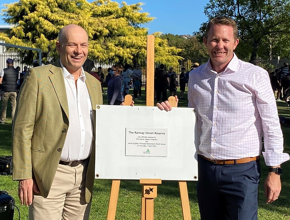 The new features at the multi-use reserve were officially unveiled today (April 7) with an opening ceremony conducted by Marion Mayor Kris Hanna and the principal of Stella Maris Parish School, James Quigley.