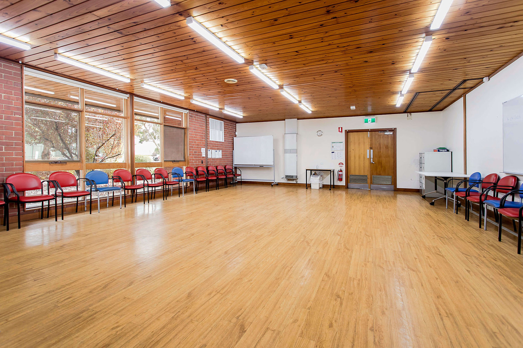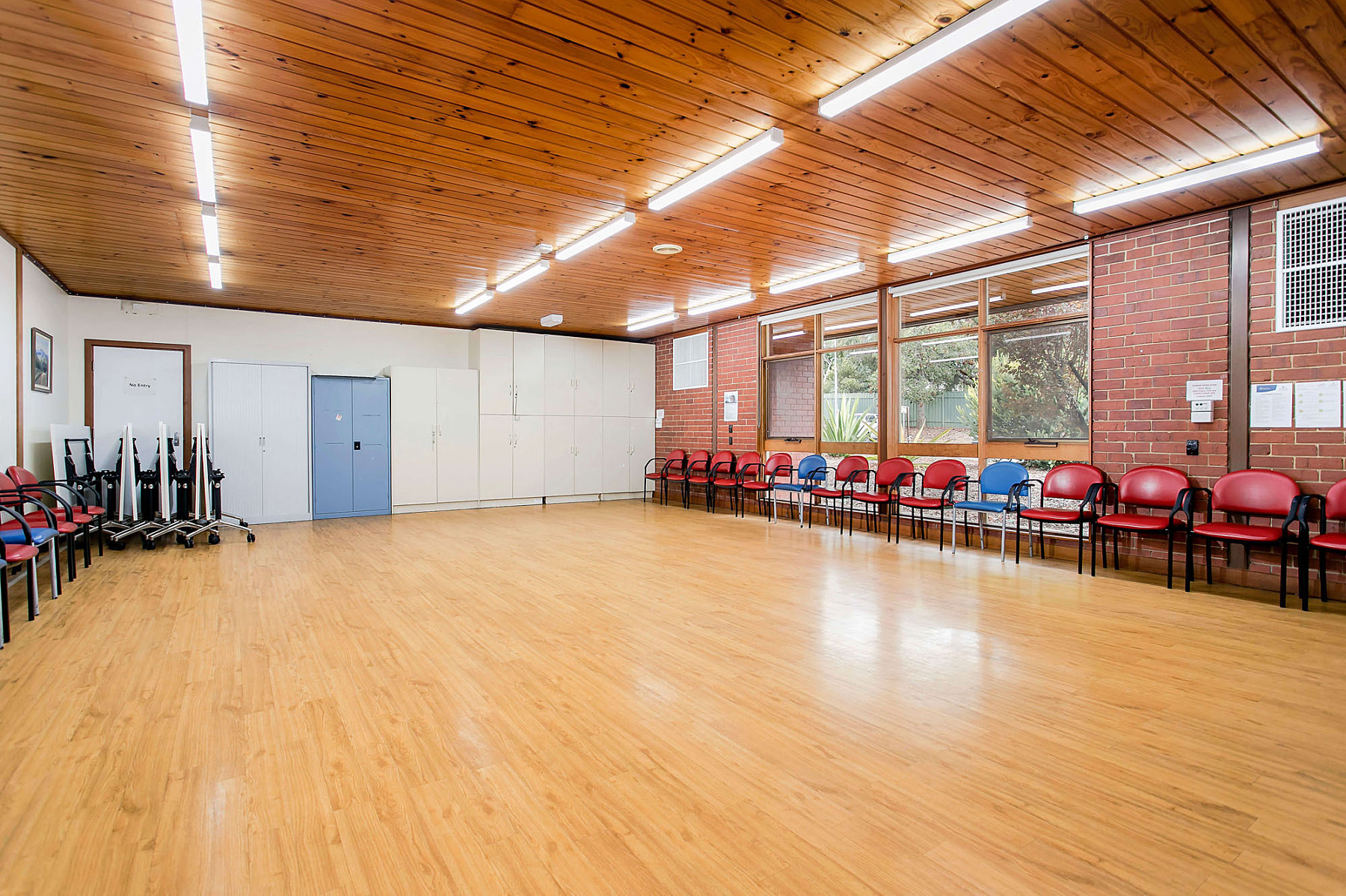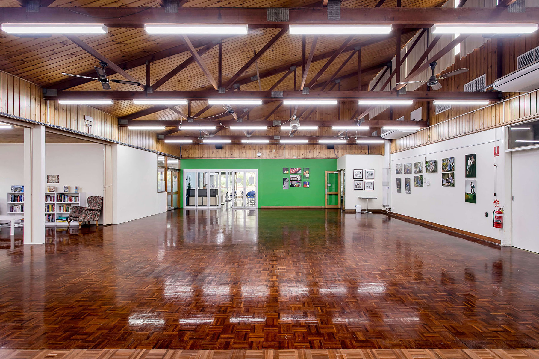 Main Hall: offers a hardwood space for hire, which is ideal for recreational activities and events. This space holds capacity for 70 people.