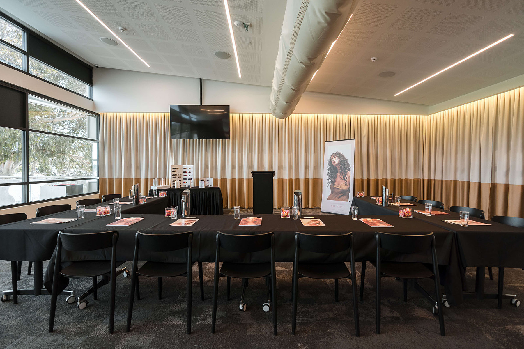 Two modern function spaces available for hire Monday to Friday 5 pm to 11 pm, Saturday and Sunday 9 am to 11 pm. The rooms can be used separately, or can be seamlessly combined to create one large function space with the capacity to seat up to 160 people standing/cocktail and 90 people seated