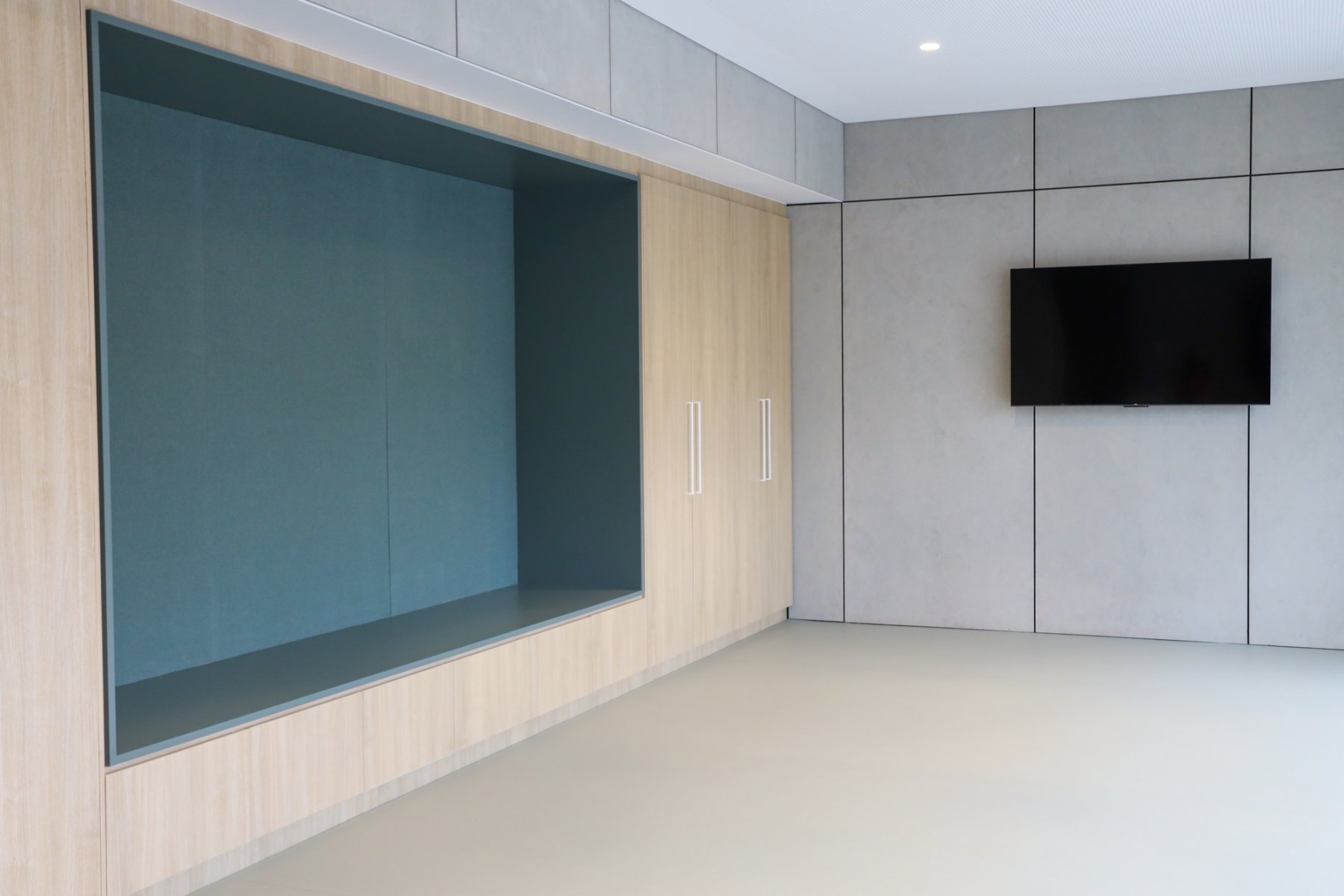 The Activity Room is bright, spacious, and ideal for workshops, wellness classes, and social gatherings with large glass doors opening to a private courtyard.