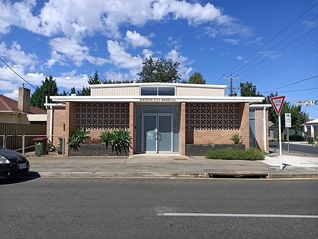 The Marion City Band Rehearsal Hall is an accessible venue with meeting/all purpose room, functional updated kitchen and bathrooms. The venue is used by the Marion City Band as their rehearsal venue, so some spaces within the facility may not be accessible to external hirers. However the venue is eager to discuss options if a musical group would like to use the dedicated rehearsal studio. There is a public park opposite with playground and separate Dog Park. The venue is on a bus route (Towers Terrace) and within walking distance of train stations (Edwardstown and Woodlands).