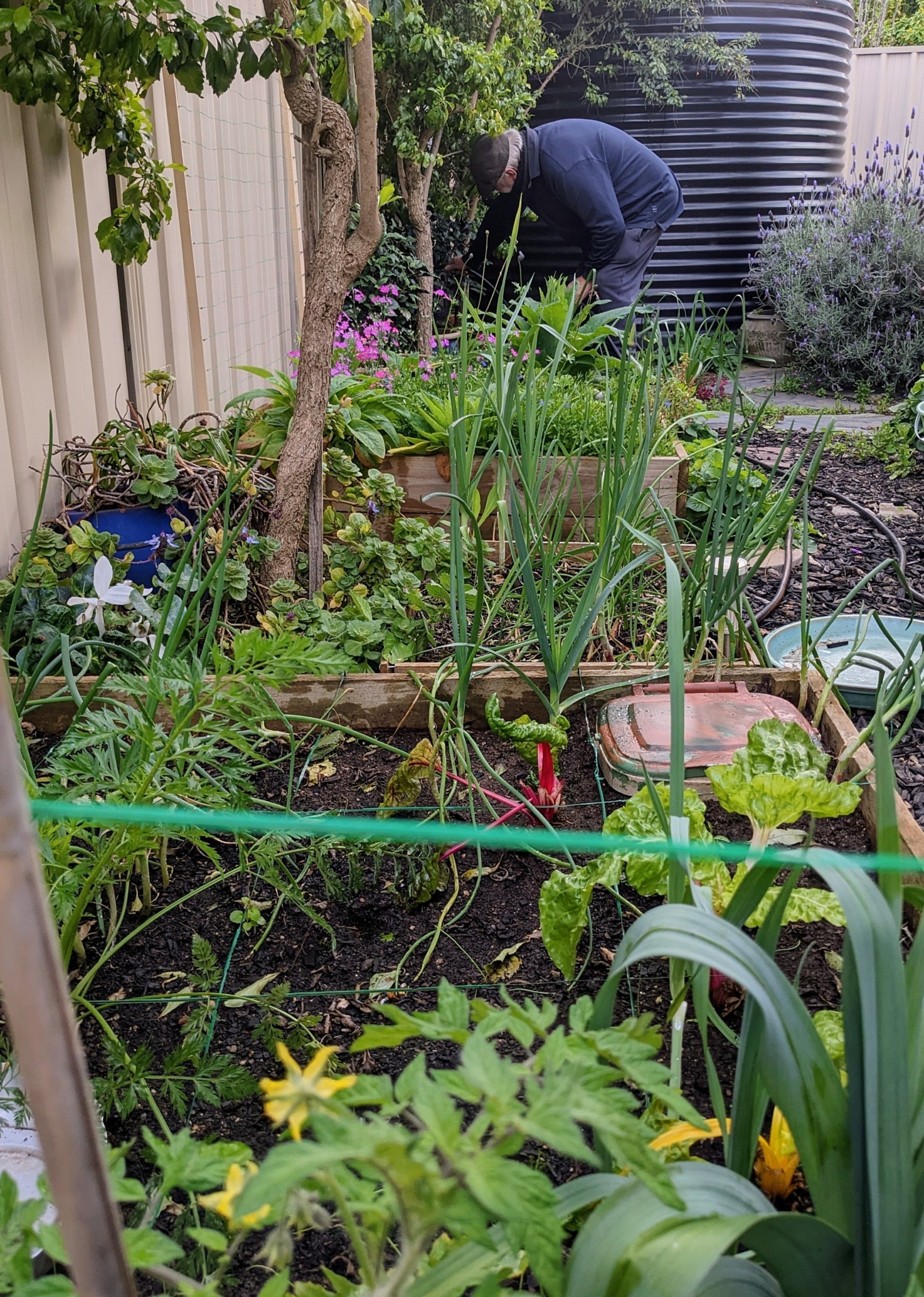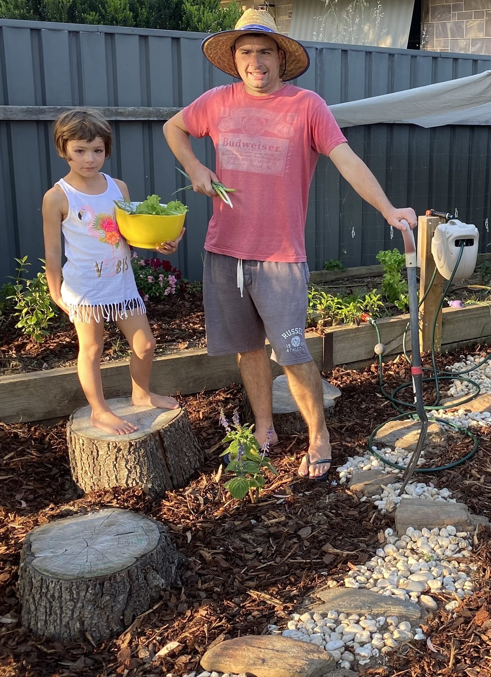 We are trying to create an area that beautifies our home and community while integrating a natural environment into our home. We are enjoying creating an area which our children and their friends love playing and spending time in. Our veggie garden provides us with food which we either enjoy eating or swapping for other veggies with friends from our neighbourhood. We are trying to develop our edible natives area particularly to broaden our selection of native plants and also strengthen our connection to Australian vegetation and, with guidance, our understanding of indigenous bush tucker. We also love having friends visiting us, who’s kids also enjoy playing in the garden and picking veggies. Our veggie garden has helped us meet people in our community through swapping veggies, sharing gardening tools, gardening advice and success (and failure) stories!