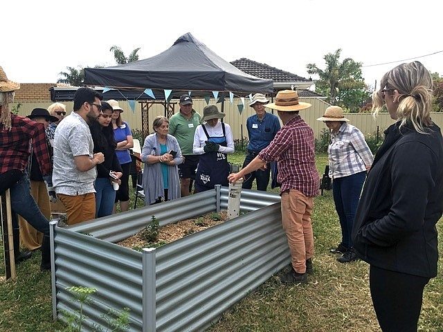 Our community garden is compact and very productive. We have 25 plots, mostly leased to members; 5 plots are reserved for communal use. Our orchard is open to the public, comprising of 30 fruit trees both standard and espaliered. We also have potted flowers and a native butterfly garden; we have resident frogs in our small ponds, confirming our environmentally friendly method of gardening is working. Our garden is a happy and peaceful place overlooking the Sheidow Creek, it's a lovely location to enjoy gardening with friends. Our aims are to grow fruit and vegetables in an environmentally and sustainable way, leaving a zero-carbon footprint. To achieve this, we have installed a solar panel with a battery, to recharge our garden tools. We use best practices in our gardening, with composting and worm farms. We encourage native fauna with our water features and butterfly friendly plants. We are also growing a close-knit friendly community, sharing knowledge and ideas to achieve an all-inclusive group. By achieving our goal, we will create an environment that is healthy, both physically and mentally, and sustainable going into the future. By sharing the food, we grow in our community plots, chatting on Saturday mornings over a cup of tea, with a homemade cake supplied by one of our members. We also have a midyear get together at a local venue, and our annual Christmas Brunch is enjoyed by everyone.