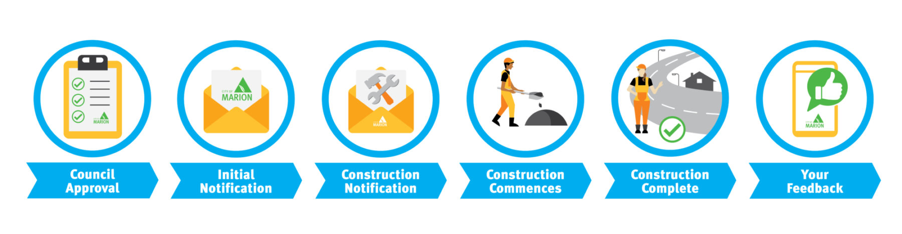 After a project listed in the Annual Business Plan has been endorsed the City of Marion, a letter will be sent to the residents immediately impacted by the proposed works and notify that works will be occurring during the financial year and what to expect.