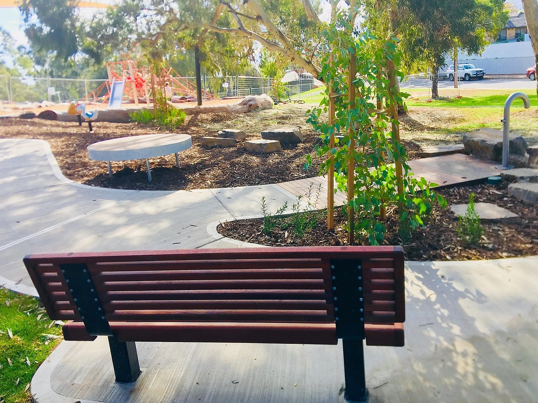 George Street Reserve features one of the largest wheelchair accessible trampolines available on the market today. Come and enjoy the water play and sunken sand pit, with play cubbies providing refuge/quiet locations for kids with autism. This playground pays homage to it's brick-making history, follow the story trail on the surrounding paths.