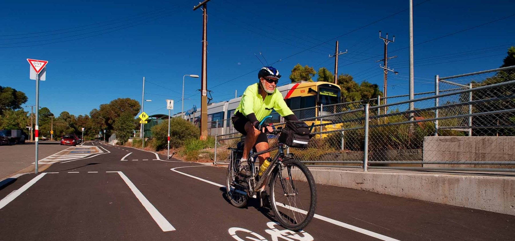 The Mike Turtur Bikeway provides 10 kilometres of shared pedestrian and bicycle path and recreational linear park which stretches from the city to Glenelg located alongside the Glenelg to City tramline.