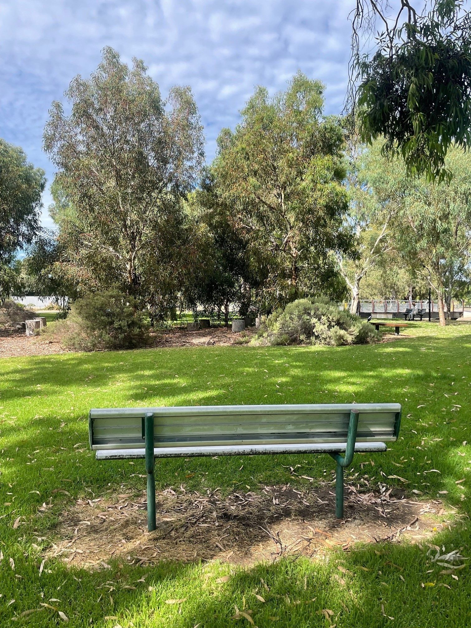 Everest Avenue Reserve in Morphettville has standard seating and some unique natural log seating to relax and take a break in.
