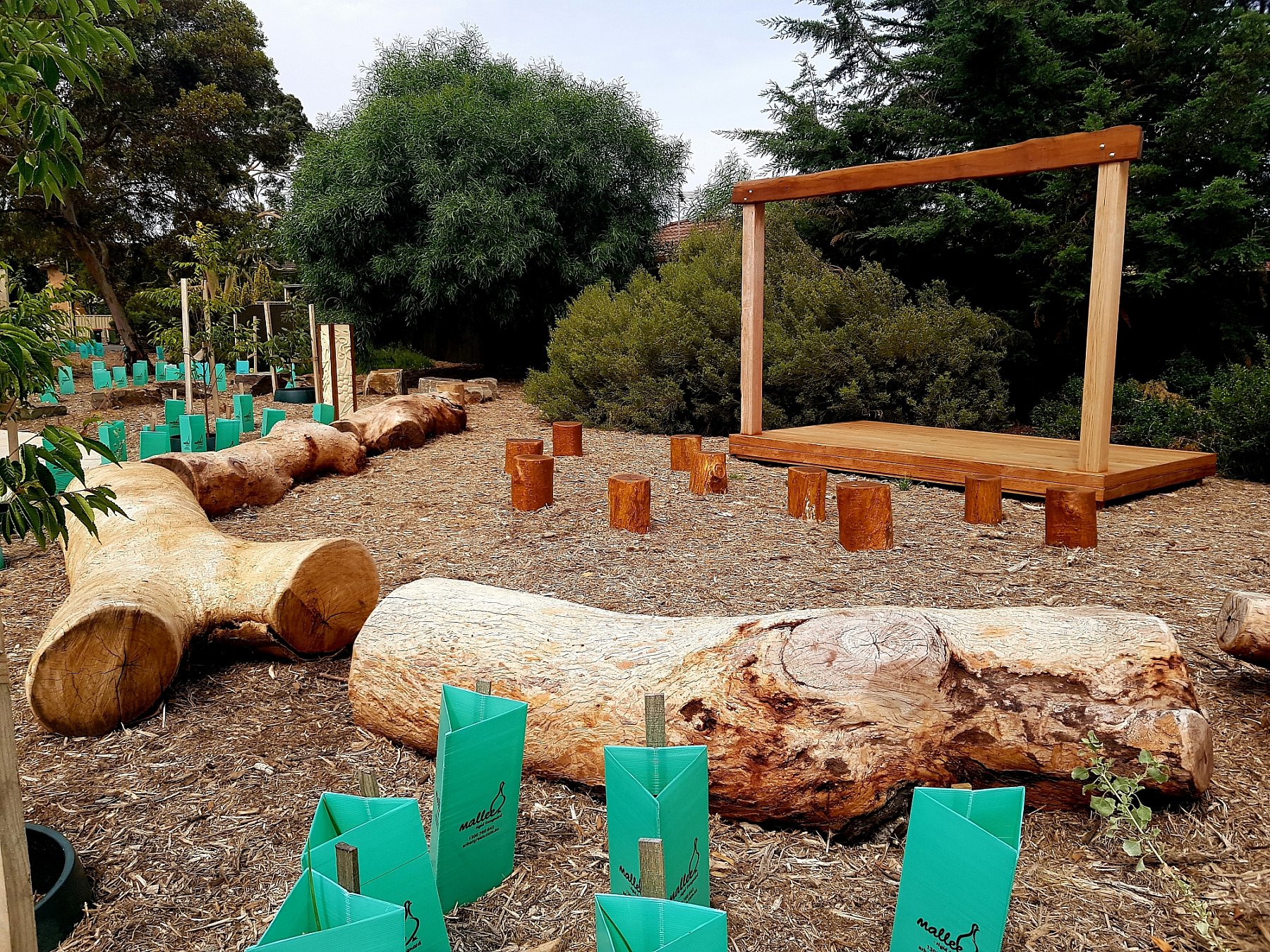 Kids can unleash their inner celebrity as they dance, act or sing on the small stage. There are seats for the audience with tree stump stools for parents, friends or teddy bears. The upgraded First Avenue Reserve playground opened in August 2019.