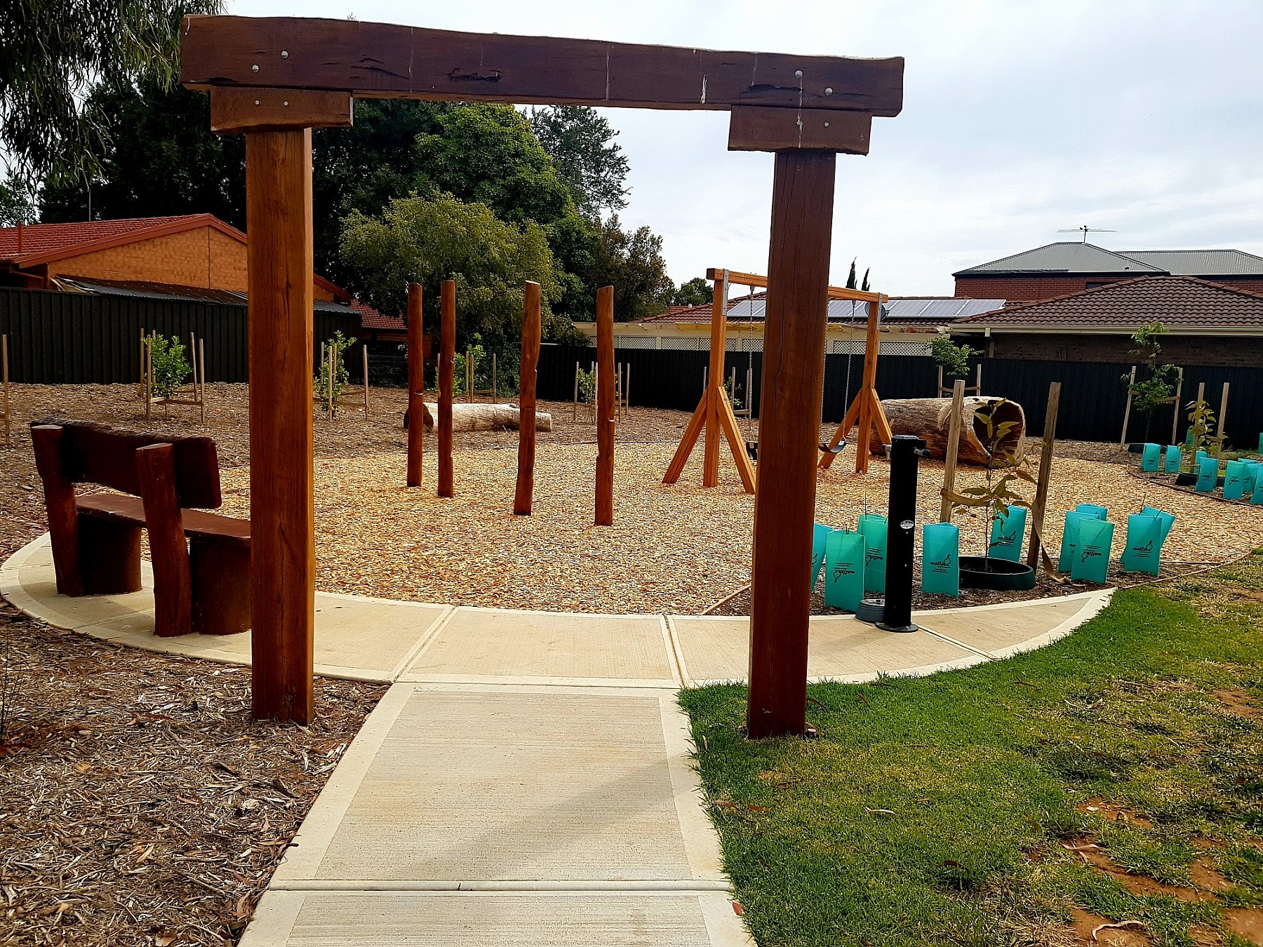 Those who want to explore or play can take on the log tunnel, vertical timber poles and swing. The shelter has been refurbished.