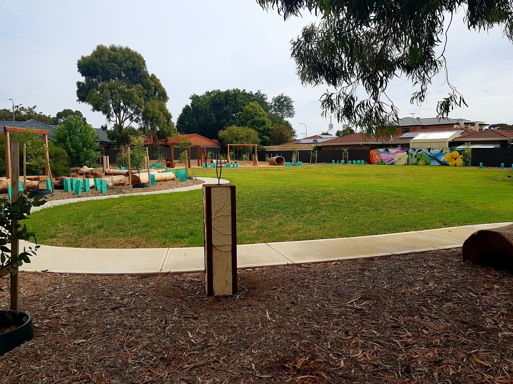 Children will enjoy the nature play and new playground activities. The large grassed area is ideal for family picnics or active play such as kick-about ball games. Artwork is featured throughout the grounds.