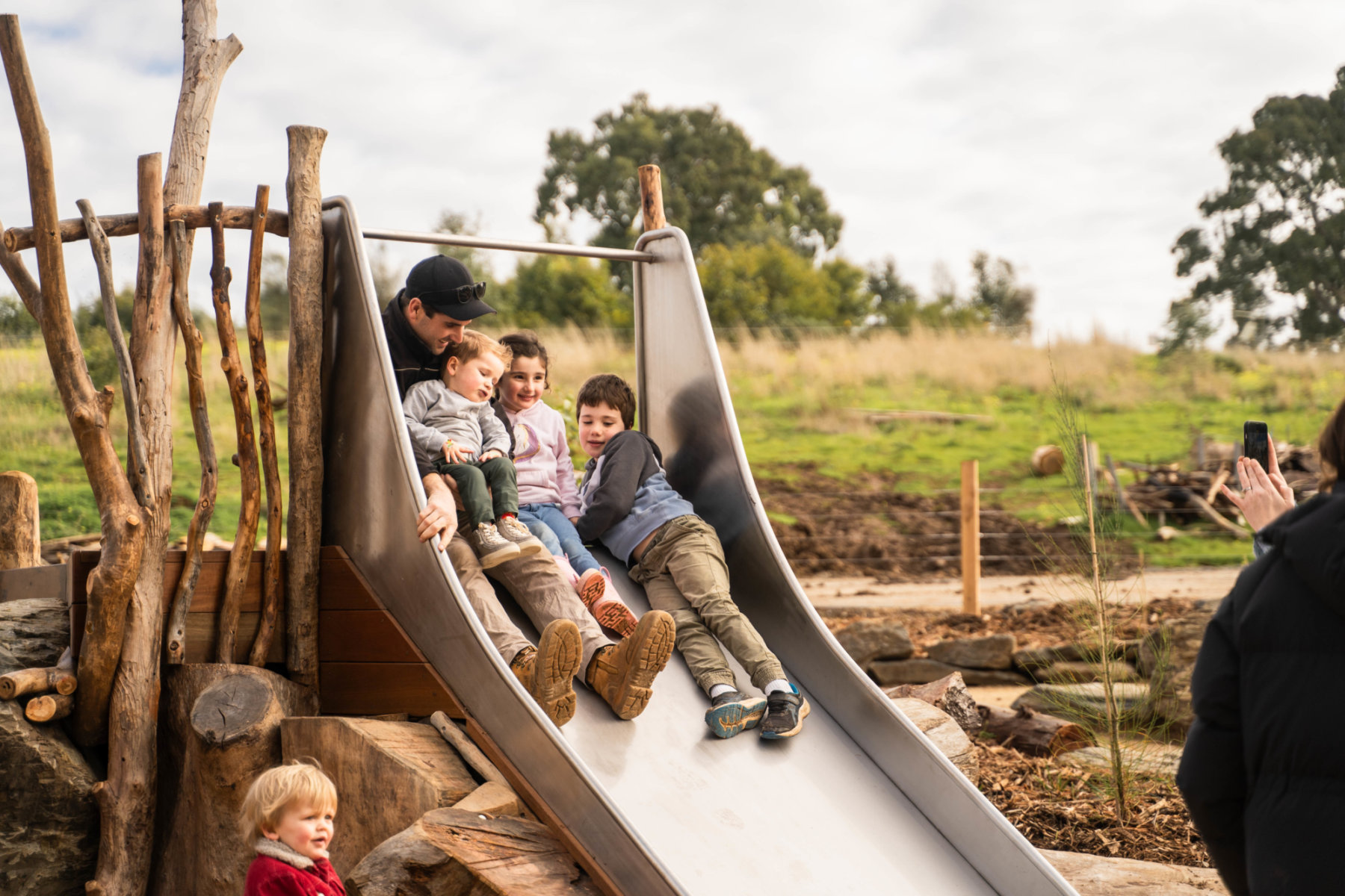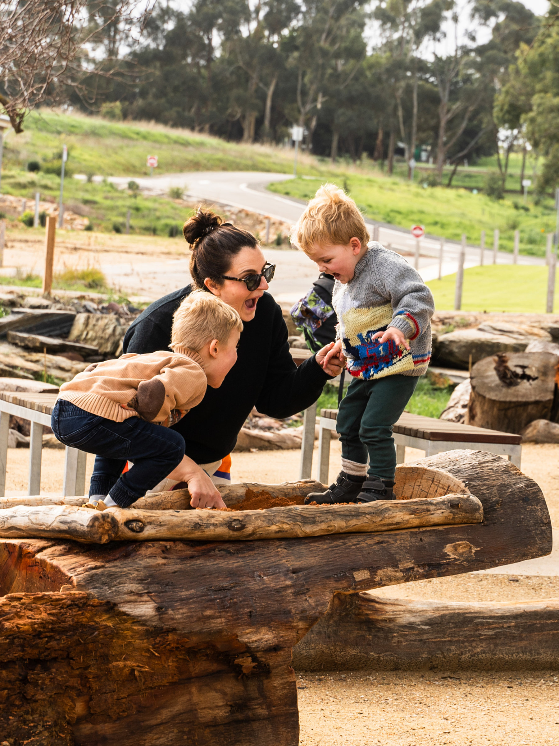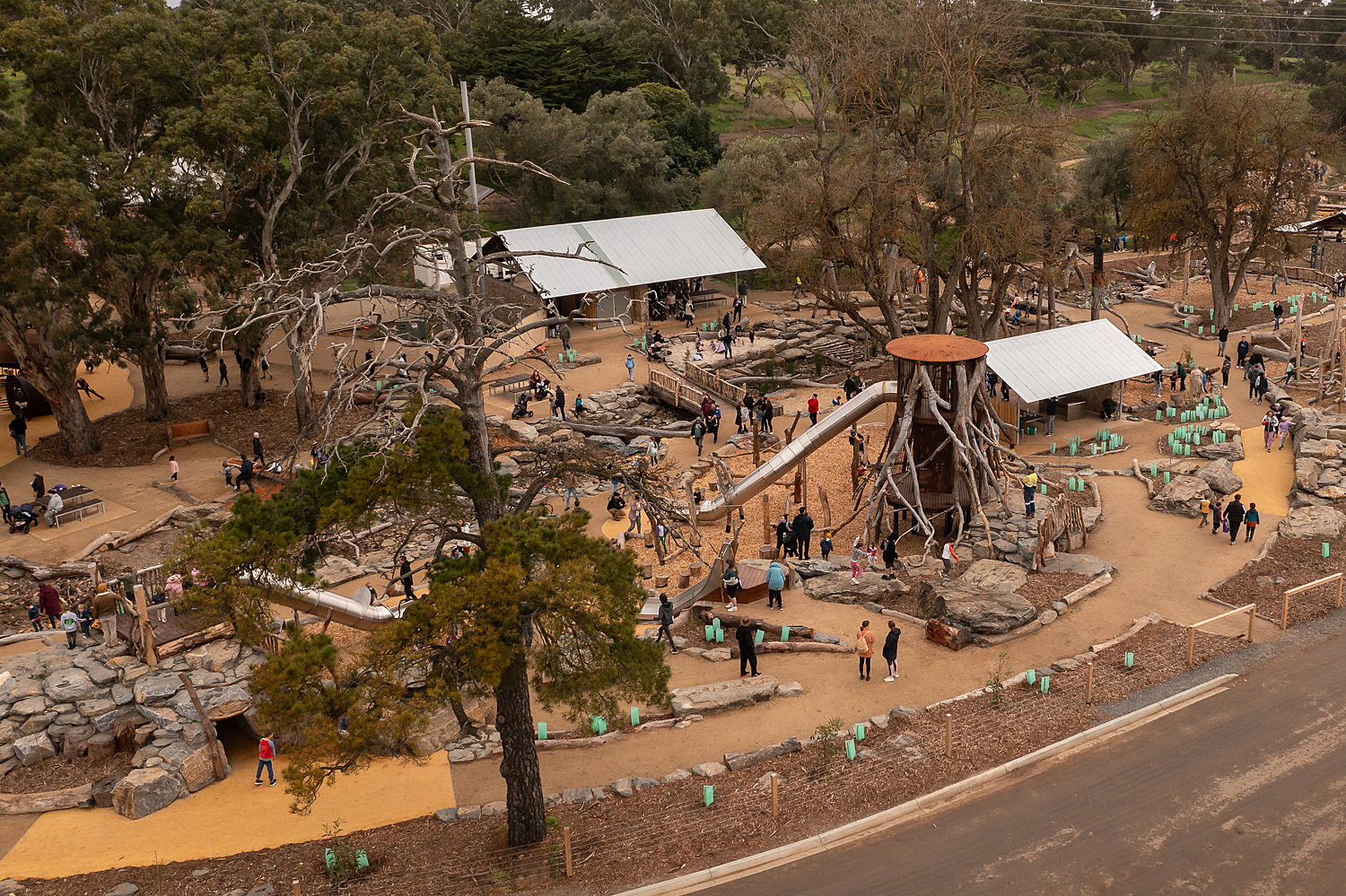 The nature play space features new additions including a flying fox, rope traverse, stepping logs and other fun elements for children of all ages to enjoy. The playground includes plenty of parking, shelters, barbeques and public toilets.
