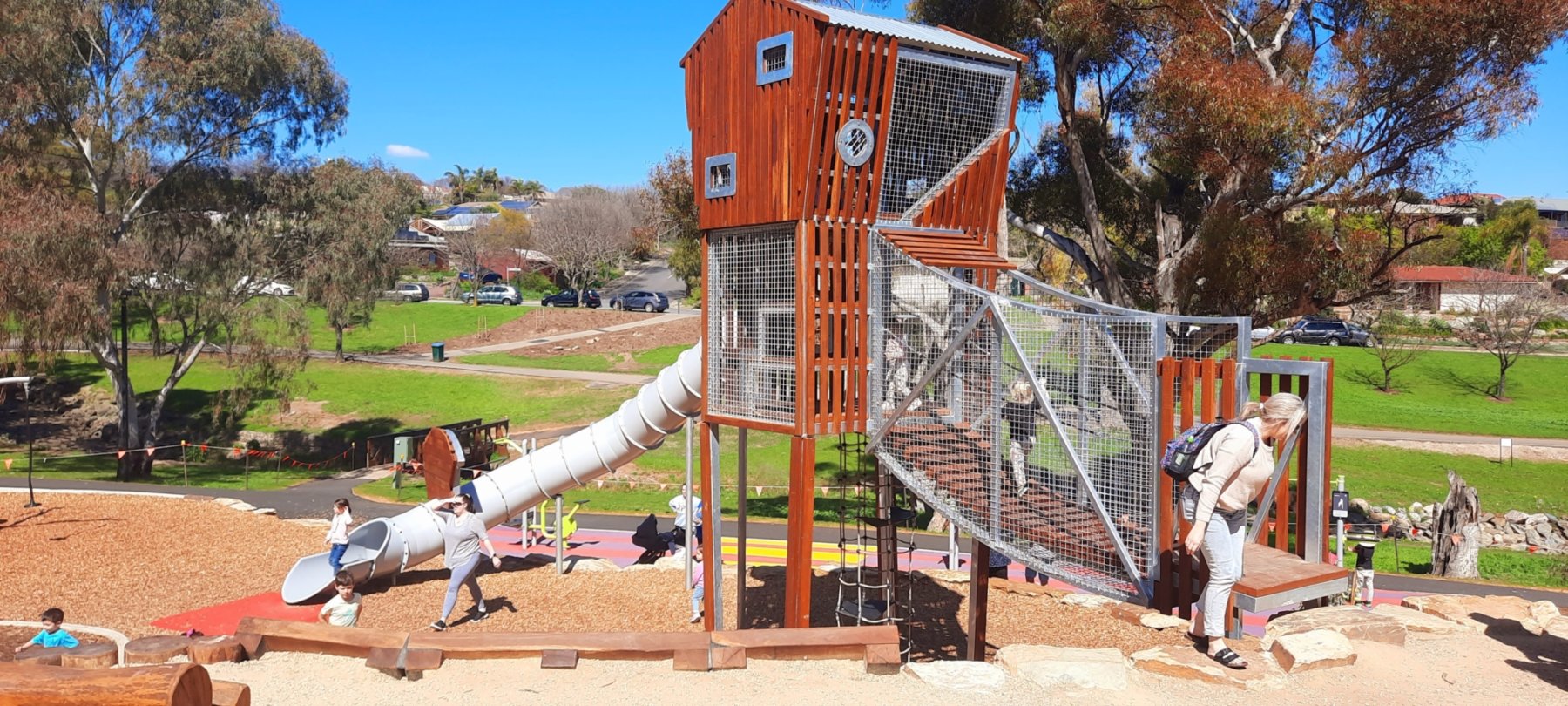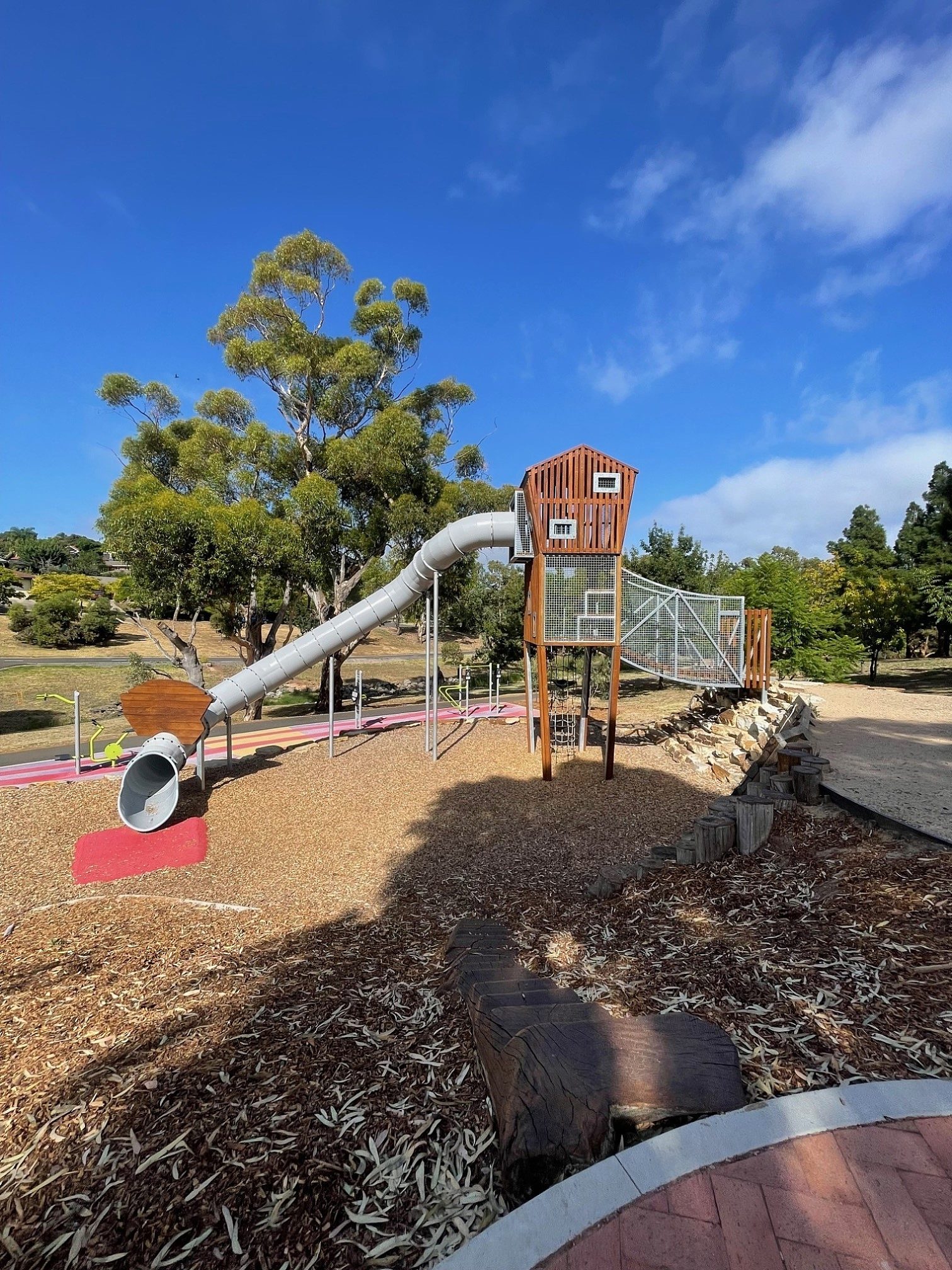 Hugh Johnson Boulevard Reserve in Sheidow Park is a regional playground that has two small playgrounds along the shared walking and cycling path (part of the Coast to Vines Rail Trail). This idyllic reserve has a duck pond and lots of opportunity for nature play.