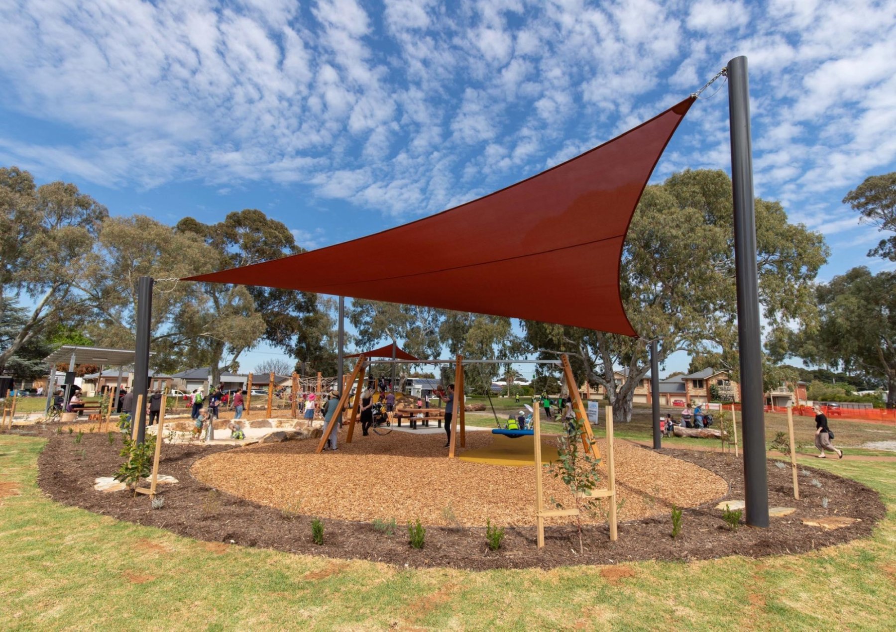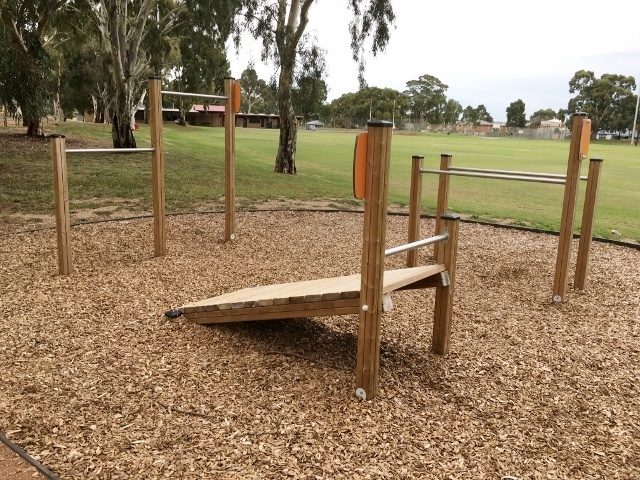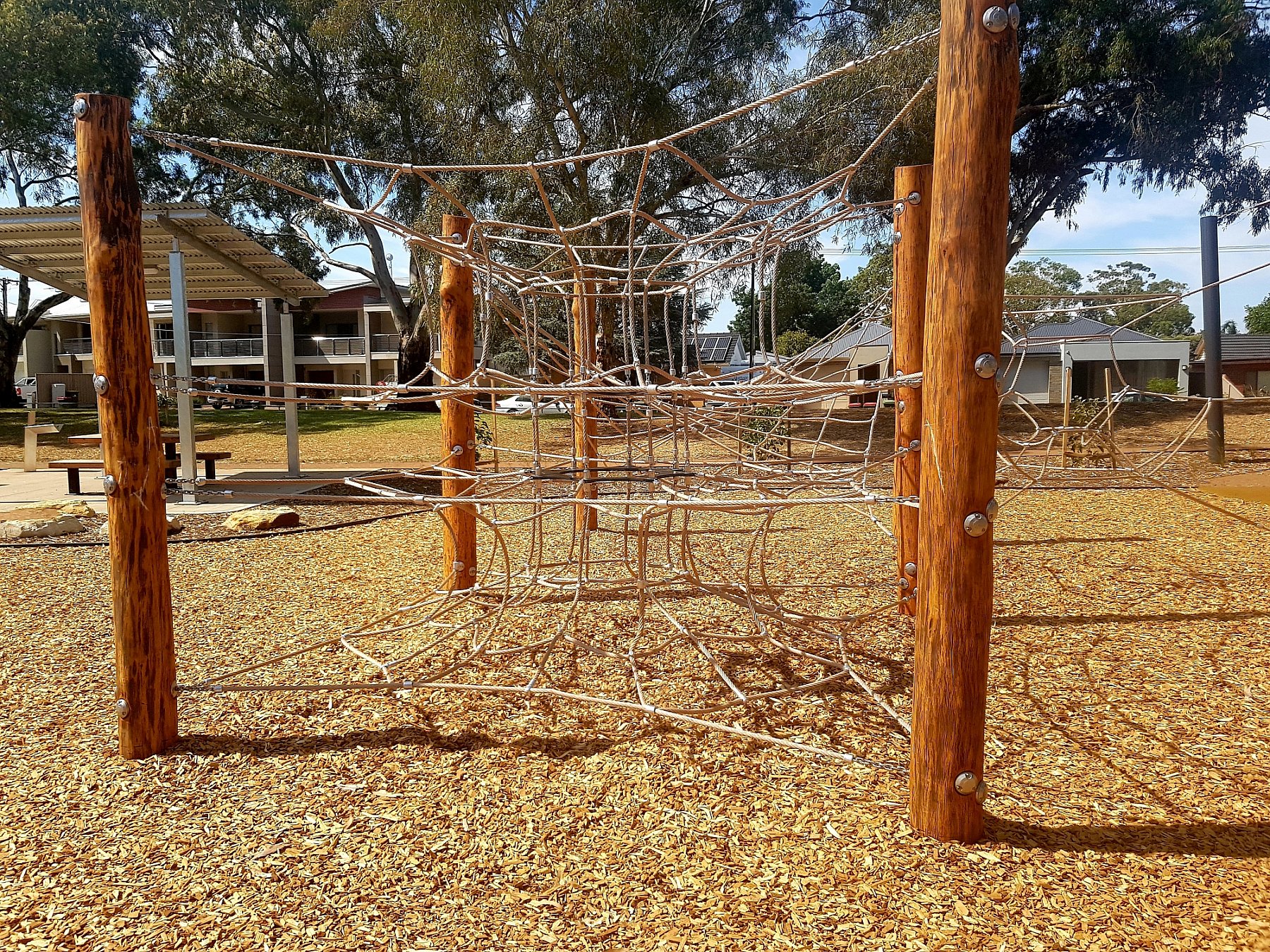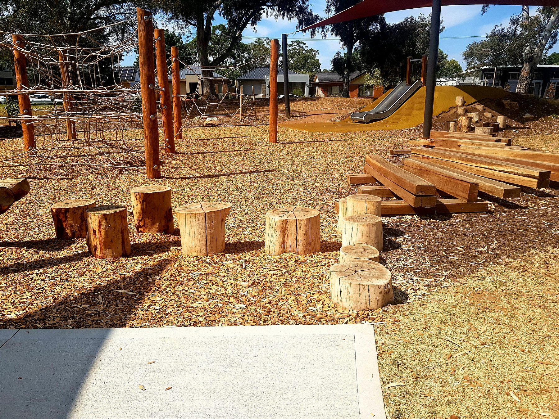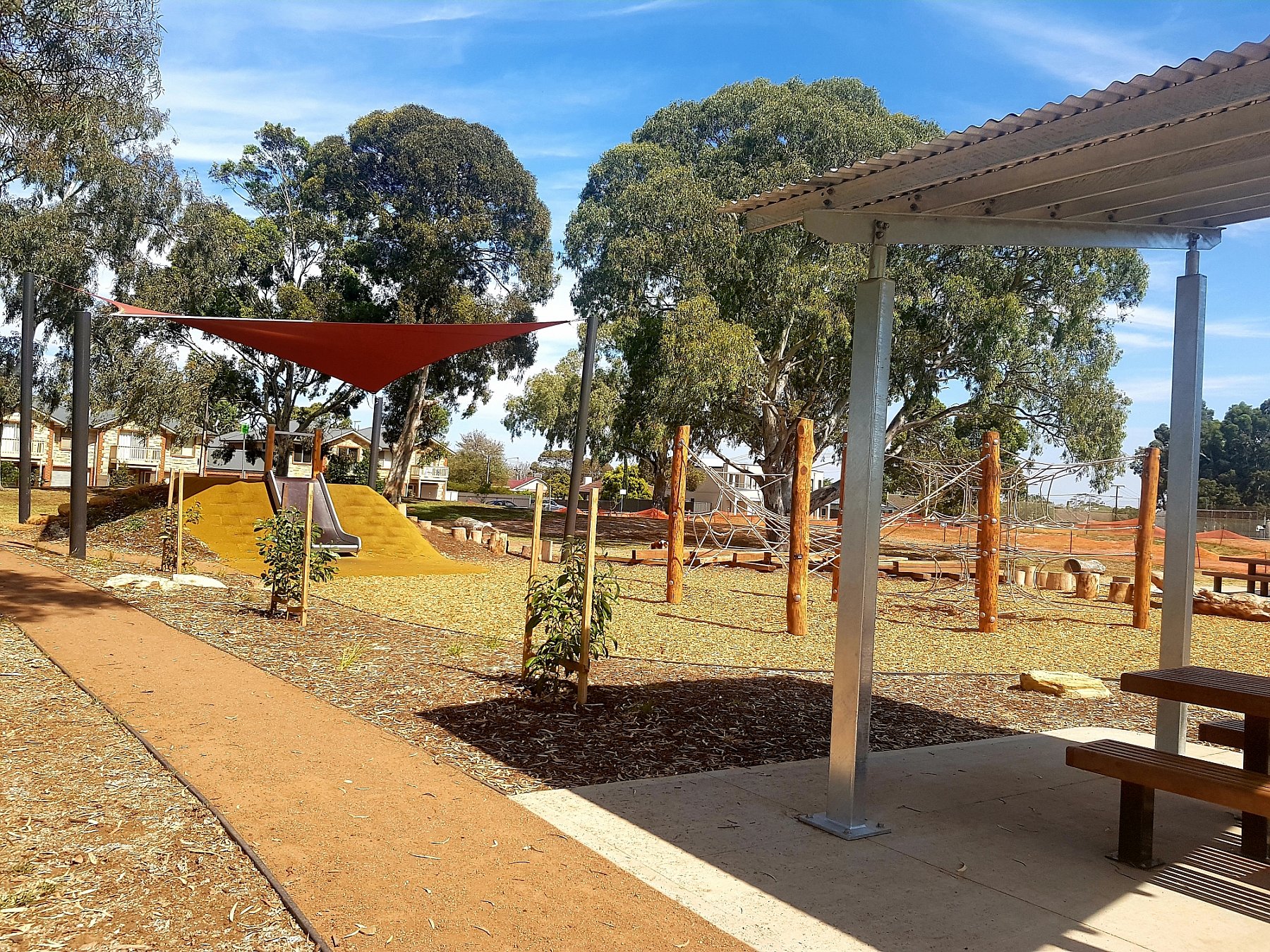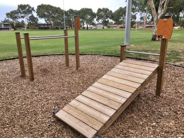 Mitchell Park Oval Playground includes timber climbing frames, a trampoline, slide, sand and water play area, a maze and steppers. There is a picnic shelter with a barbeque, drinking fountain, walking paths, landscaping and irrigation.