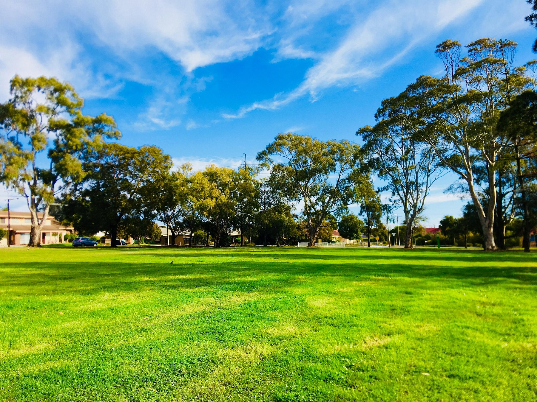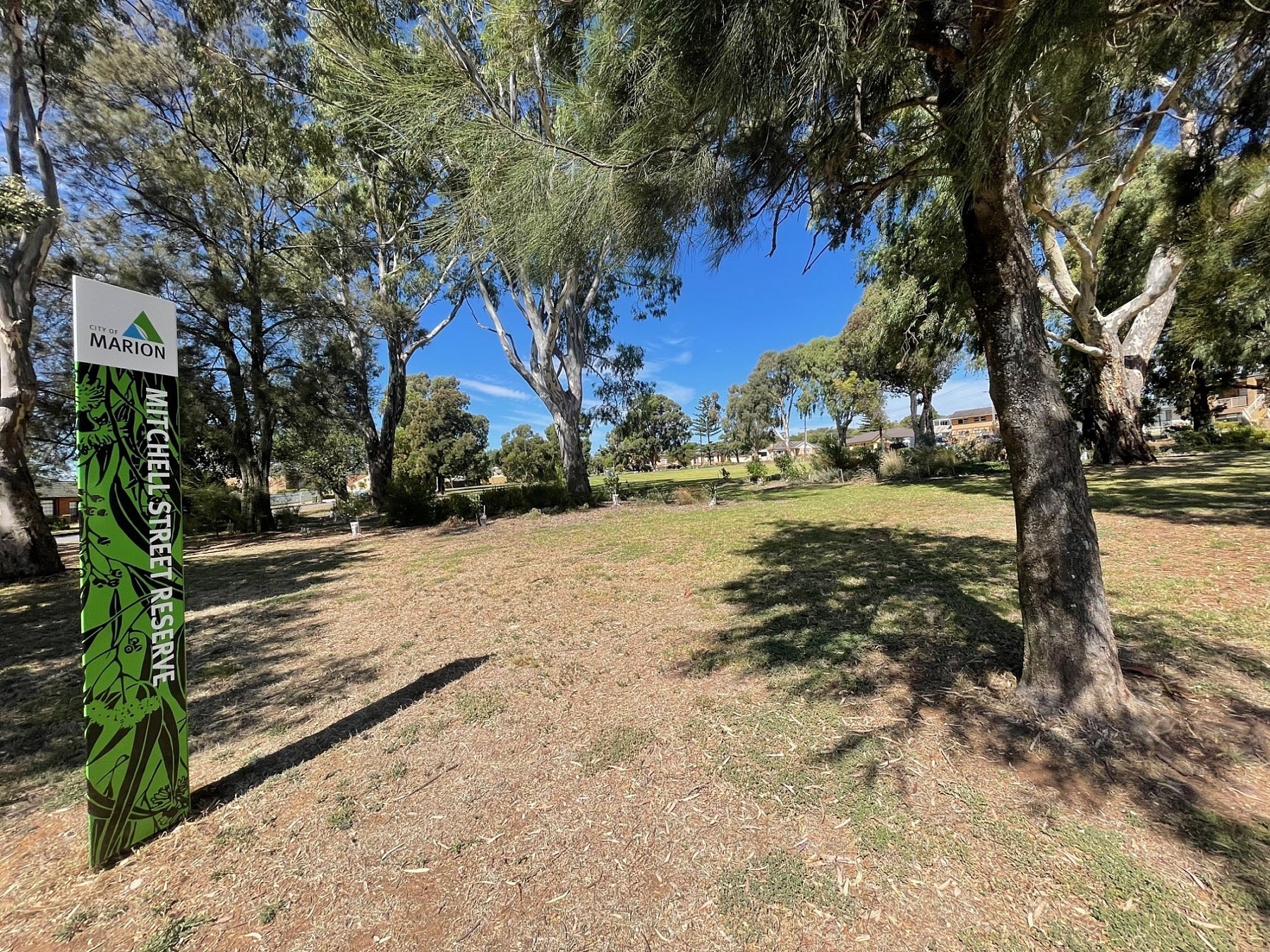 Mitchell Street Reserve in Seaview Downs is a large and grassy reserve, ringed by large imposing gum trees.