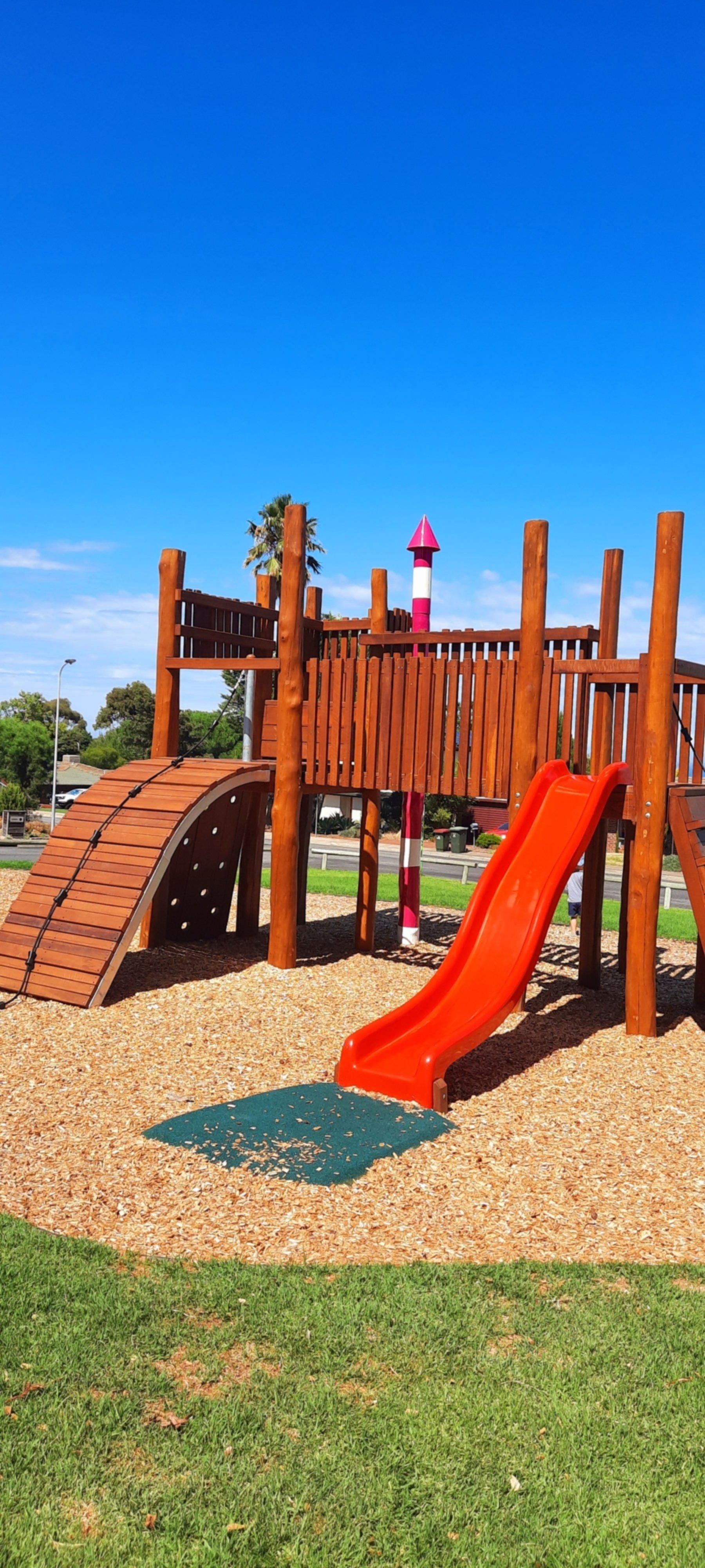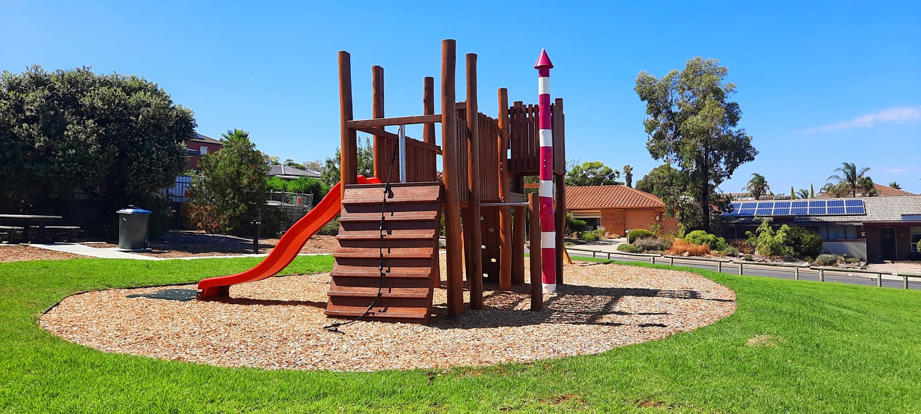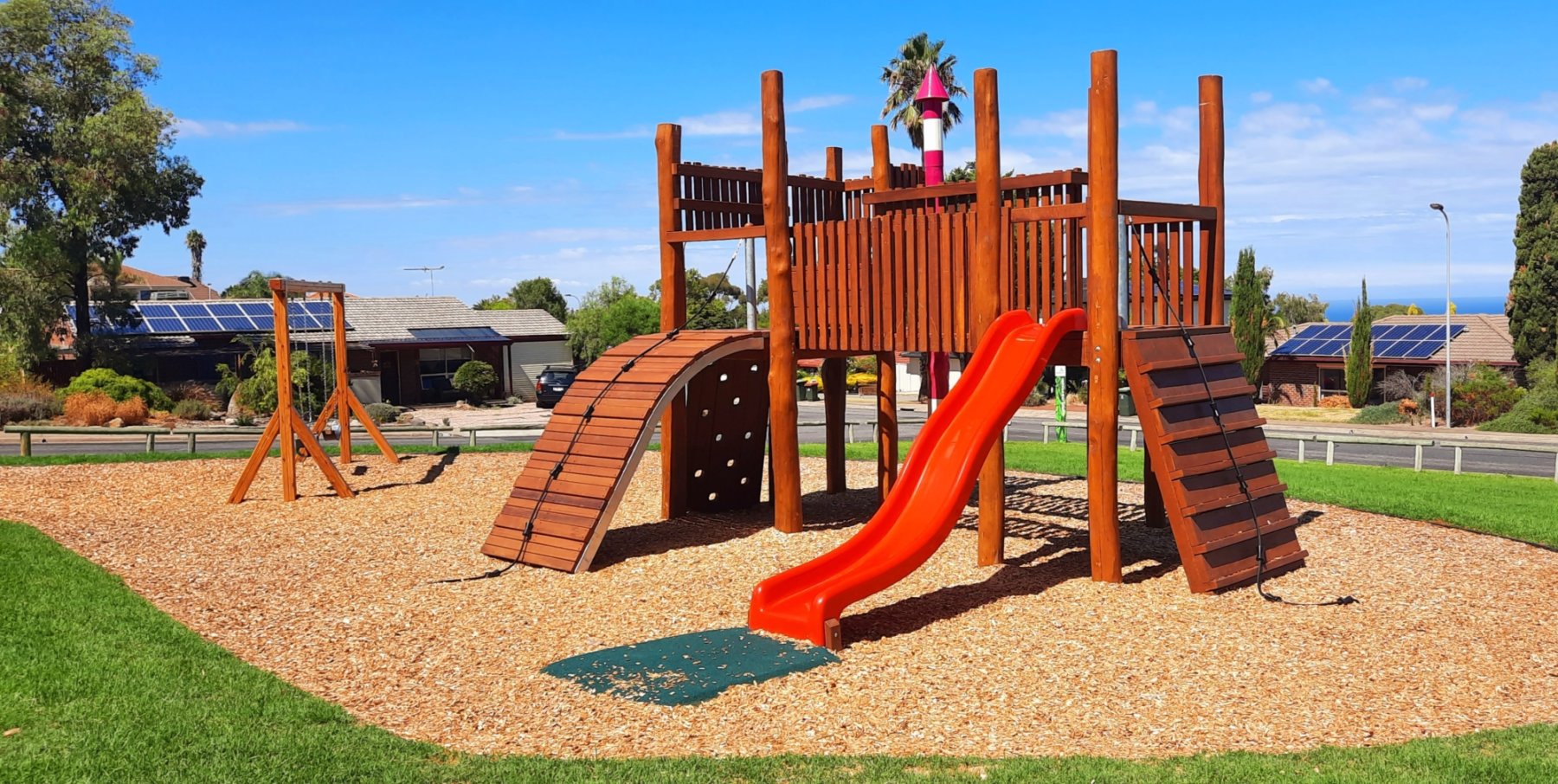 Oakvale Way Reserve was upgraded with climbing challenges, a soccer goal, and a nature play trail in February 2021. The new combination play unit is 1.8 meters high offering a taller and longer slide, with stunning coastal views at this local level Hallett Cove playground.