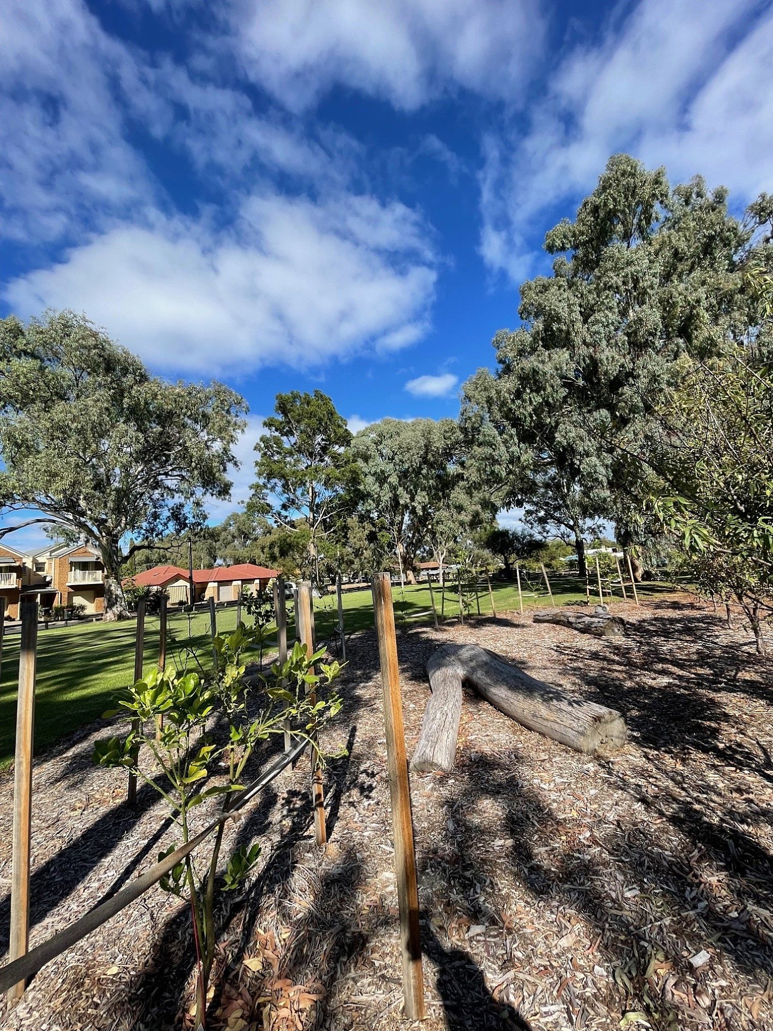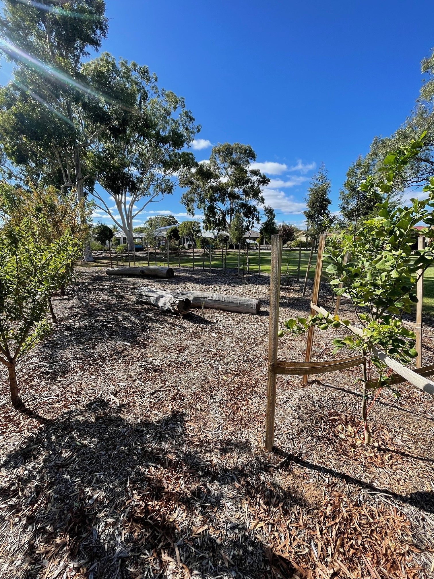Citrus and nut trees have been planted on the Sutherland Street side of the reserve and are low maintenance and irrigated.