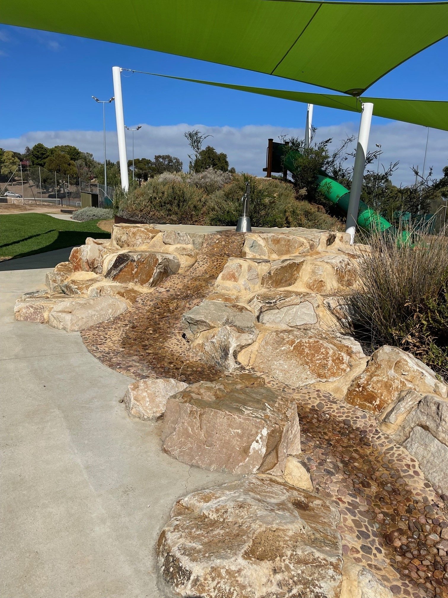 There is a drinking fountain on site along with shade sails and a new public toilet.