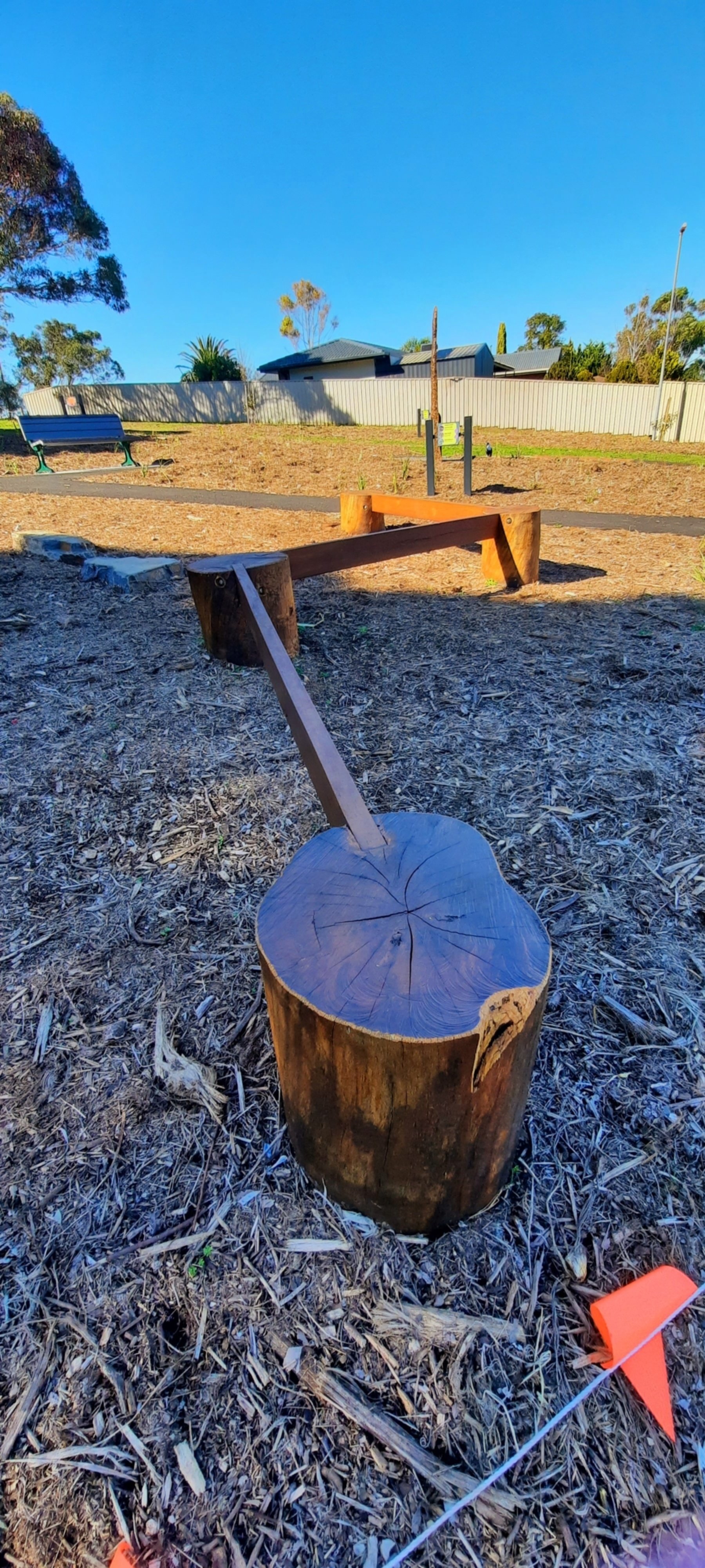 A stage, seating rocks and blackboard allow the space to be used as an outdoor classroom and scattered balance beams, sensory path and kick about area provide for recreation activities.